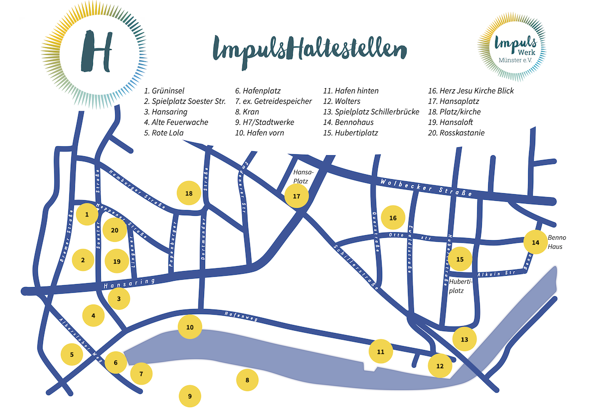 Für diesen Gedanken konnten wir die Bezirksvertretung Münster-Mitte gewinnen, die einen Zuschuss für die Erstellung der ImpulsHaltestellen bewilligt hat.