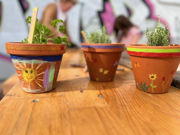 Das erste Programm an der Grüninsel4Kids wurde mit Kindern aus dem benachbarten Kindergarten durchgeführt. Hierbei wurde zusammen das Hochbeet mit Kräutern wie Zitronenmelisse oder Oliven-Kraut bepflanzt. Zudem konnten die Kinder ein eigenes kleines Hochbeet sowie ein Insektenhotel bauen. Die Angebotsreihe fand kulinarisch ihren Abschluss indem aus den gemeinsam gepflanzten Kräutern Kräuterbrot und Kräuterbutter hergestellt wurde. Wir bedanken uns bei der Rasselbande für die tolle Zusammenarbeit an der Grüninsel4Kids!
