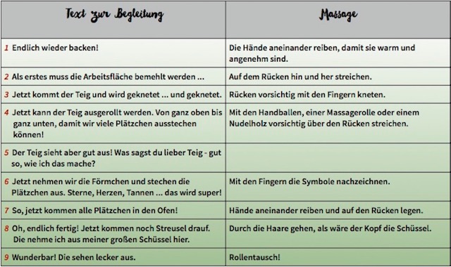 Zurzeit wird der Plätzchenteig geknetet, gerührt und gerollt. Hier kommt ein Rezept für eine Kinderrücken-Massage!