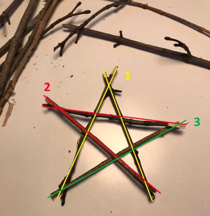 Nun lege die Zweige zu einem Stern (siehe Foto unten) zusammen.